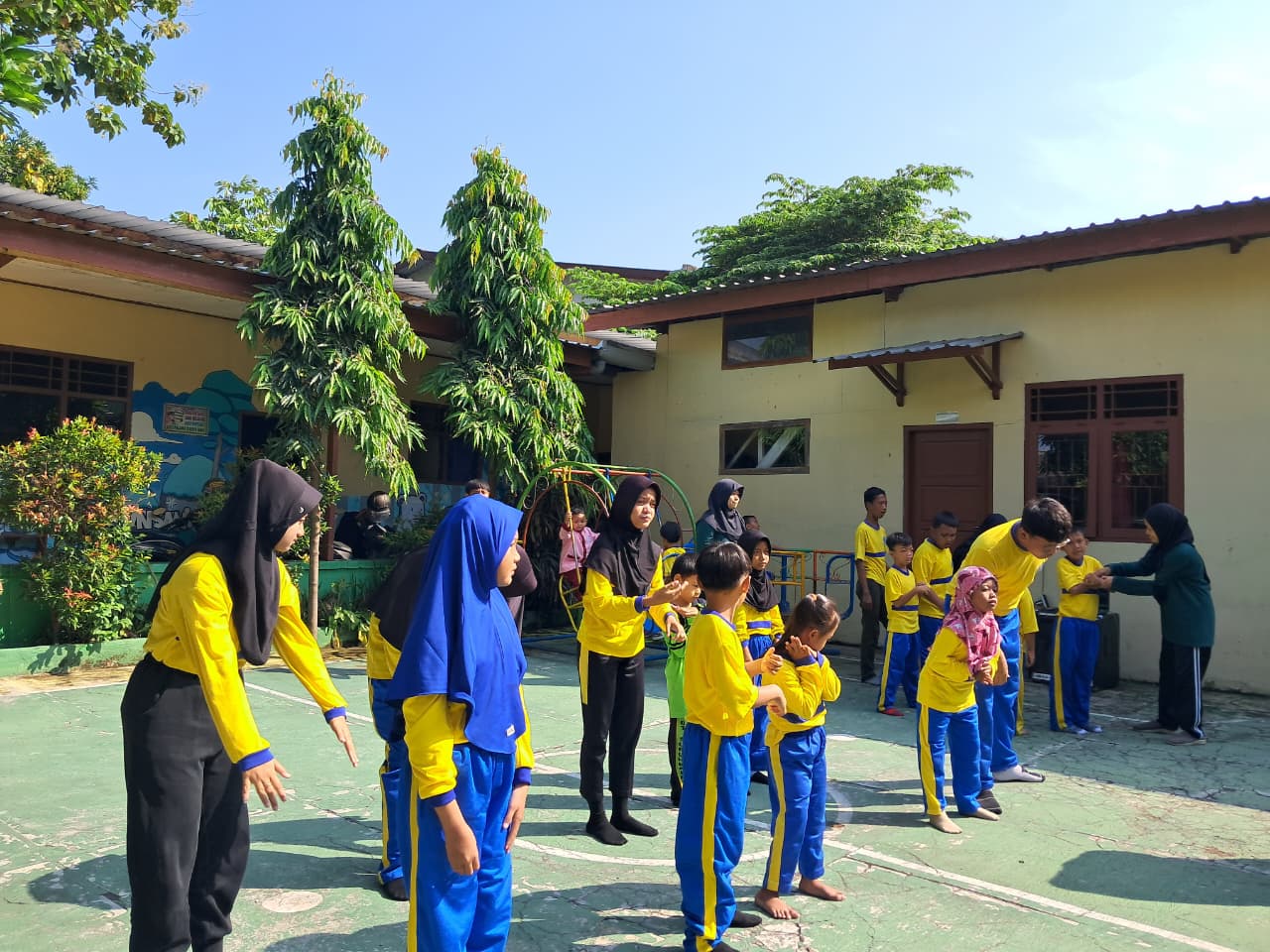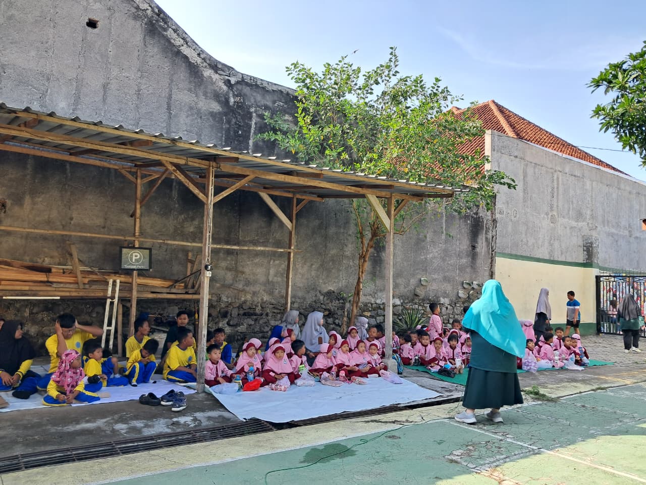 Lokasi kegiatan adalah halaman atau area terbuka di lingkungan SLB Bina Karya Insani. Tempat yang sederhana namun bersih dan terawat, dengan dinding beton yang polos dan pepohonan rindang yang menjadi peneduh alami. Pemilihan lokasi di SLB memberikan penghargaan dan kehormatan kepada tuan rumah. Ini menunjukkan bahwa TK Insan Kamil datang bukan hanya untuk memberi, tetapi juga untuk belajar dan berbagi di "rumah" teman-teman barunya. Ruang terbuka ini juga memungkinkan anak-anak bergerak bebas dan berinteraksi dalam suasana yang santai dan tidak kaku.